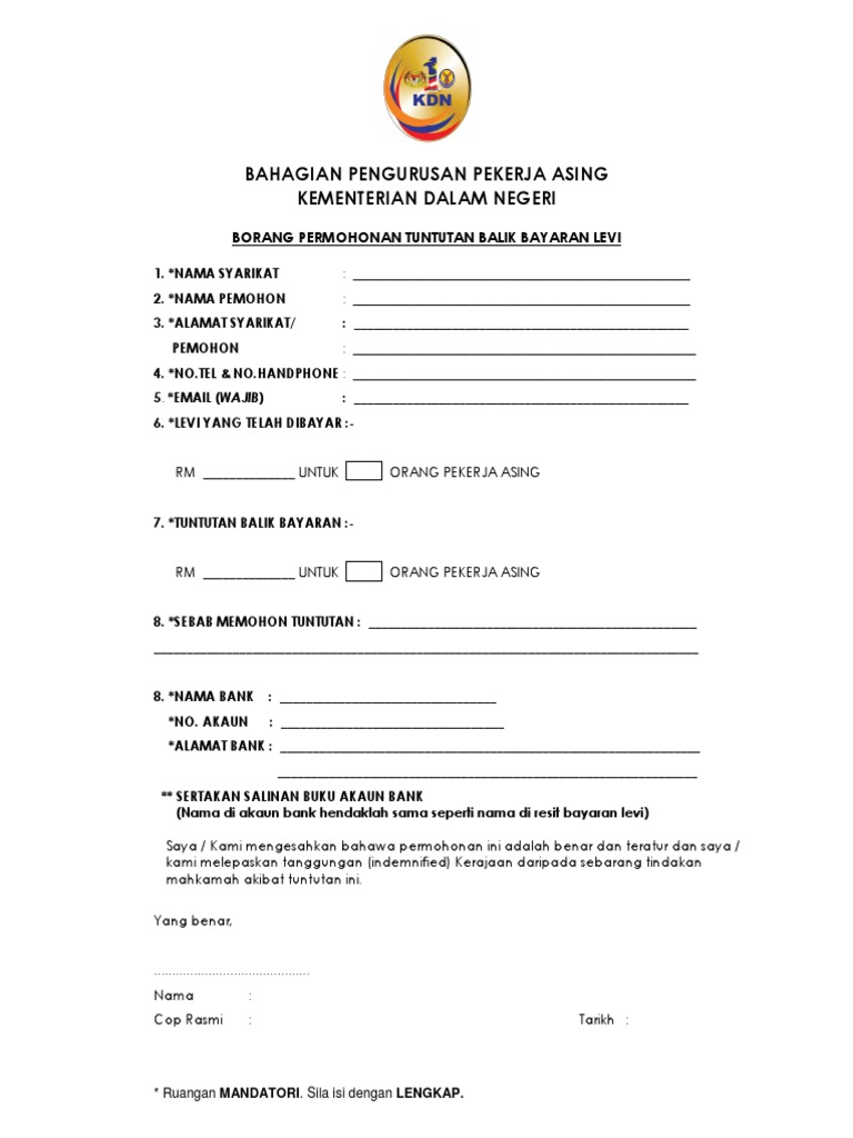 Surat Permohonan Tuntutan Balik Bayaran Pdf