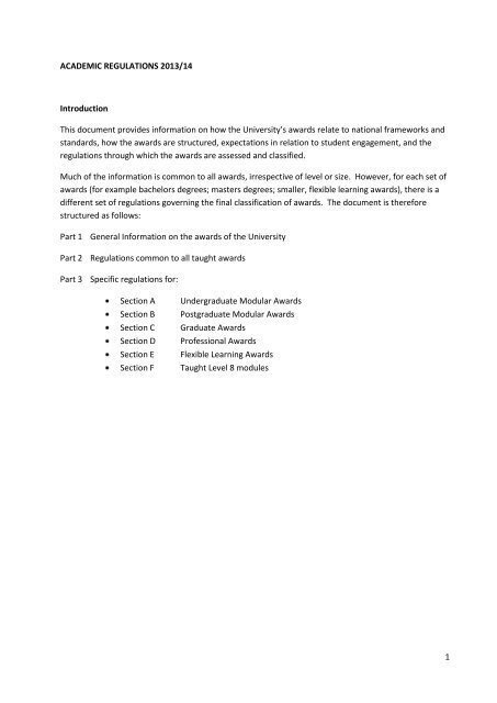 Academic Award Regulations Parts 1 To 3 Staffordshire University