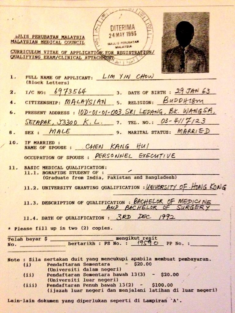 22ncc520 04 2012 On Twitter Lim Yin Chow Registered Himself As A Doctor With Mmc In 1993 Http T Co Niffspmcas