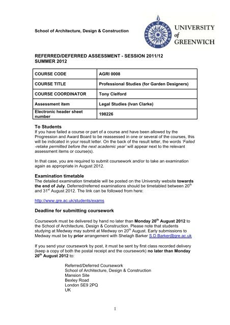 Block Course 2012 Summer Law Resit Paper University Of Greenwich